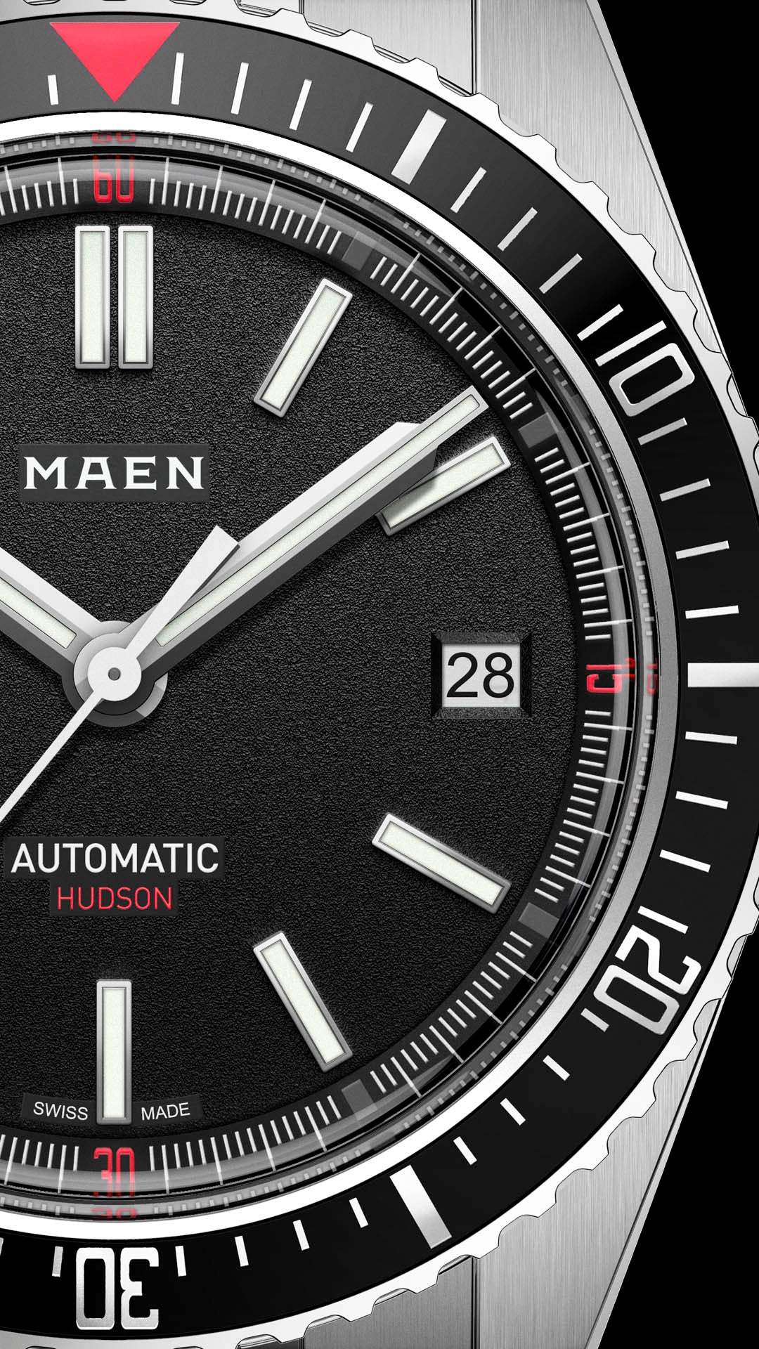 The Hudson Automatic is assembled in La Chaux-de-Fonds, Switzerland. Waterproof testing, entrance inspection and final quality control is also performed in Switzerland.