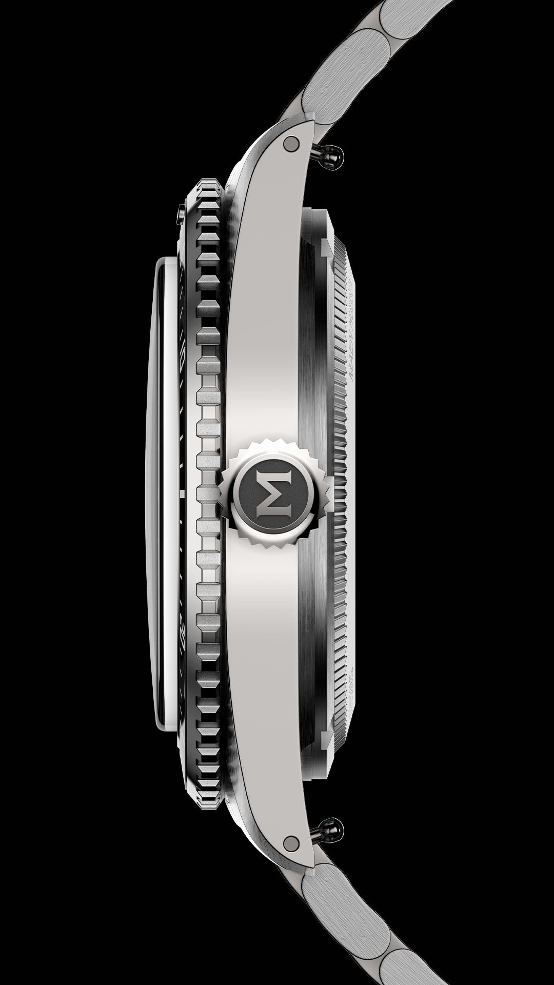 The 30 ATM case now features a bold box-domed crystal, along with a slimmer case and bezel for a cleaner, more balanced look on the wrist.