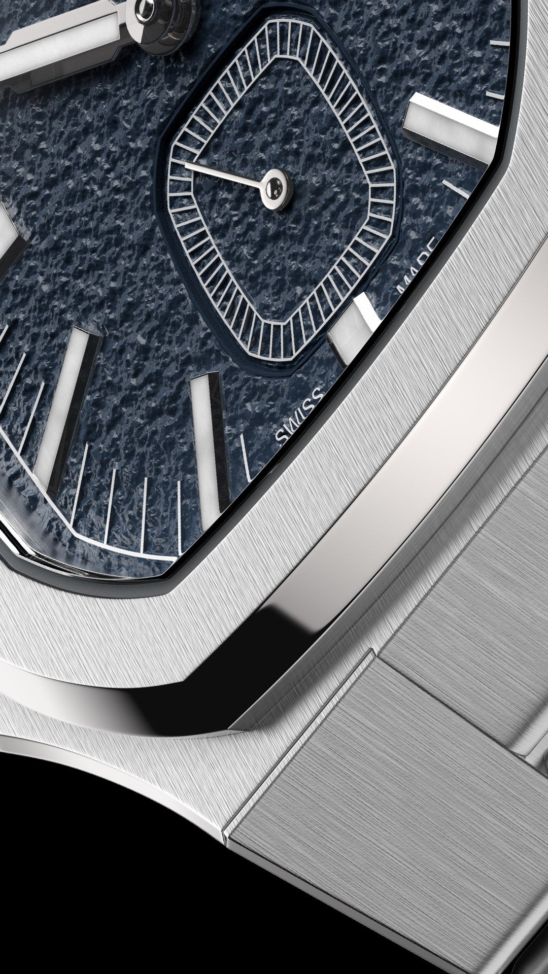 For the Manhattan 37 Ultra-Thin, we’ve introduced an entirely new dial design. Inspired by the rare Tuscan dials of the 1990s, the hammered texture offers a distinctive look that sets this model apart. Paired with a sub-seconds dial at 6 o'clock, it seamlessly blends elegance and functionality.