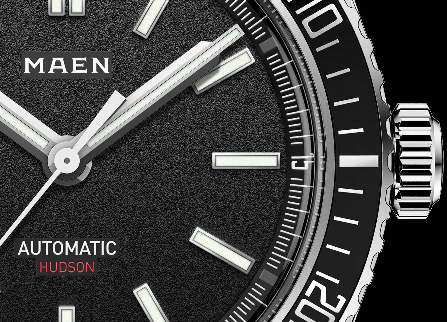 When it comes to dial design it is all about proportions and finding the right balance. The Hudson dial was carefully designed to create an interesting yet very readable look.
