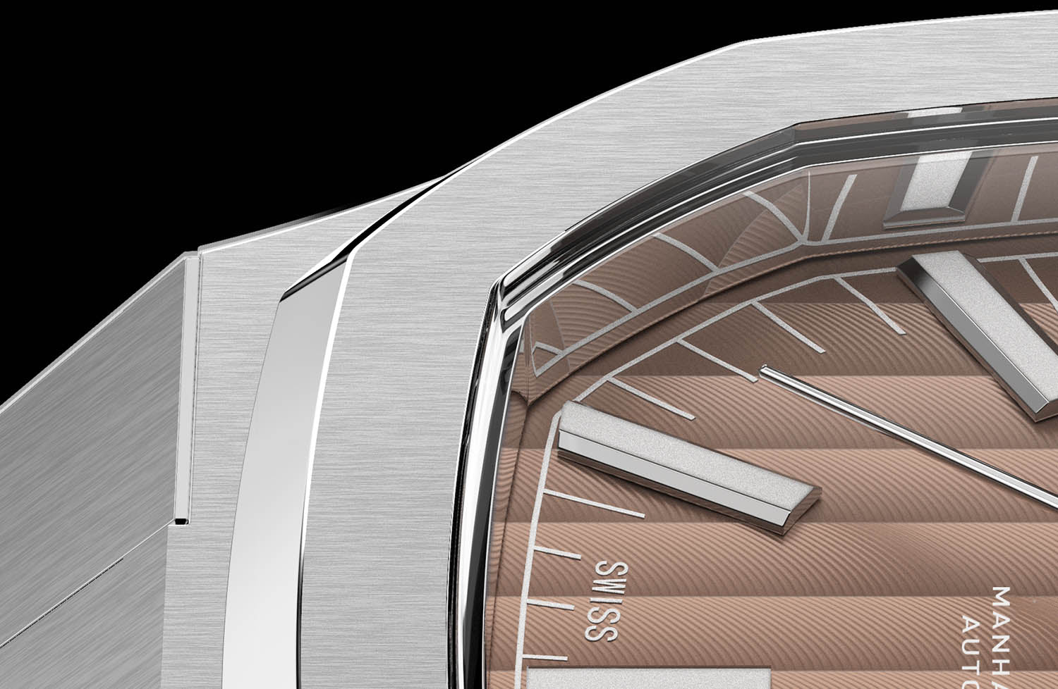 The Manhattan 40 has an unique vertically elongated Côtes de Genève dial that creates a spectrum of beautiful shimmers depending on the lighting.
