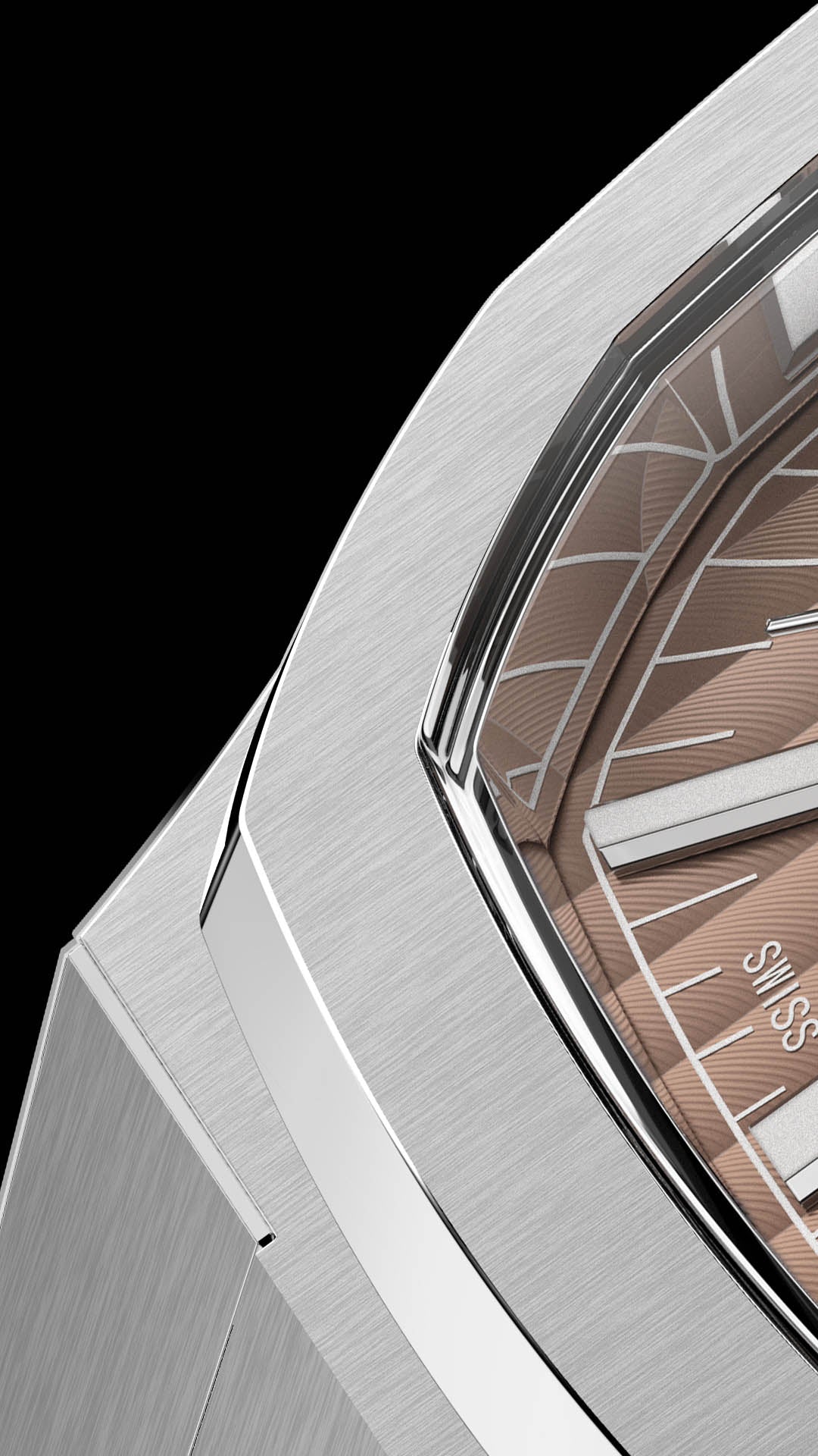The combination of polished and satin-brushed finishes highlight the unique shape of the case and bracelet.
