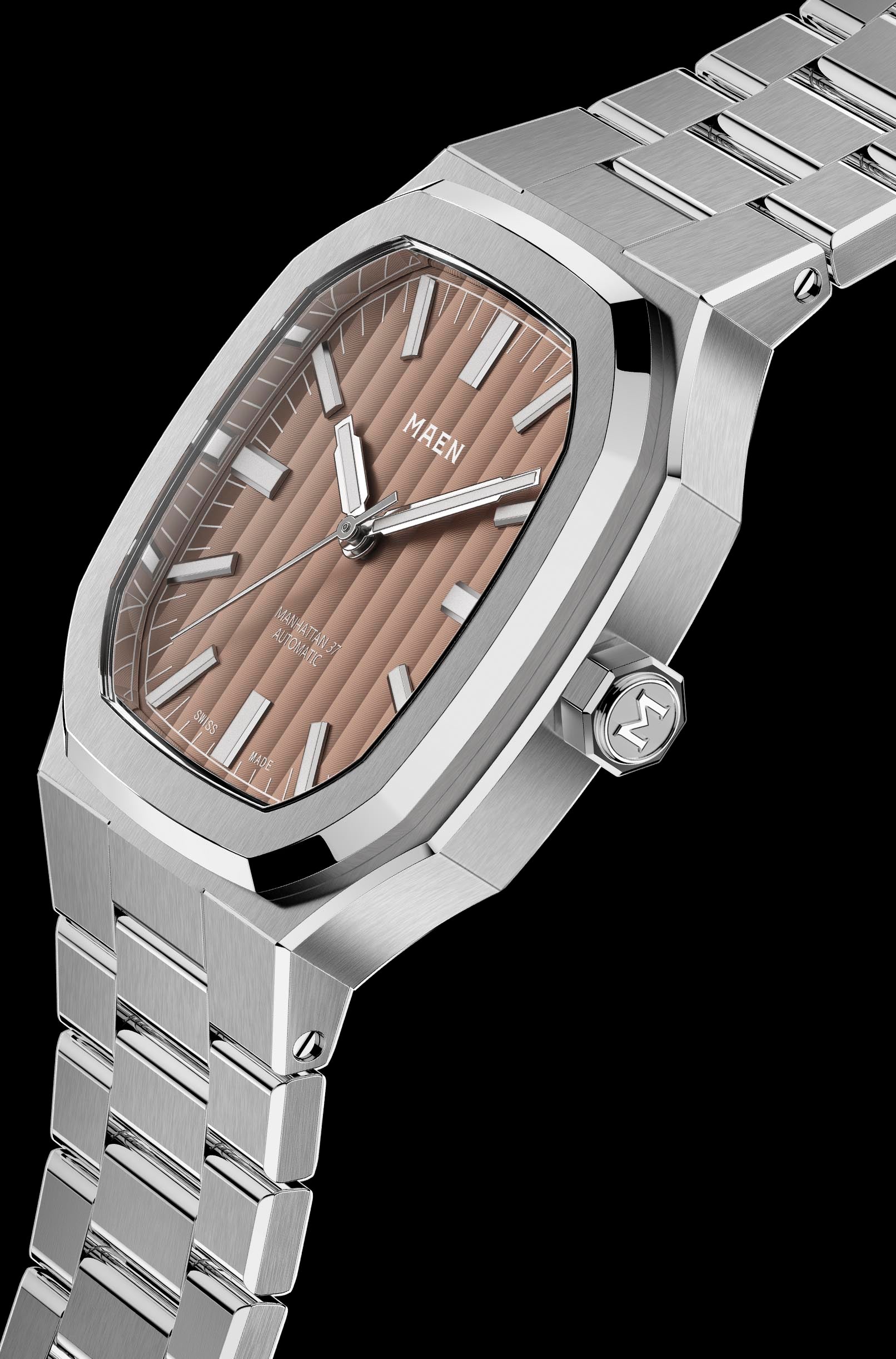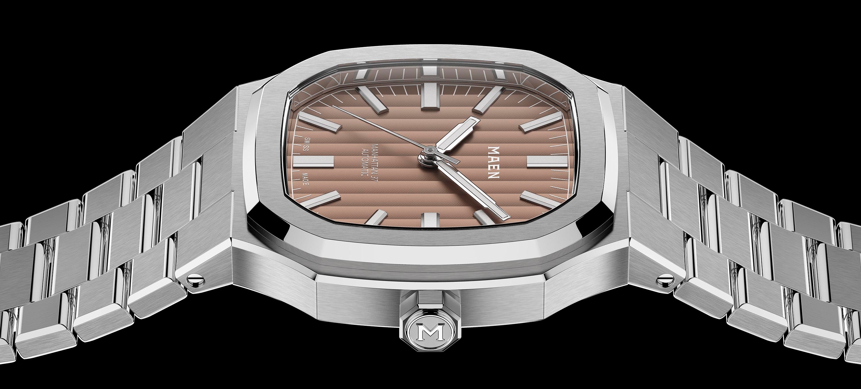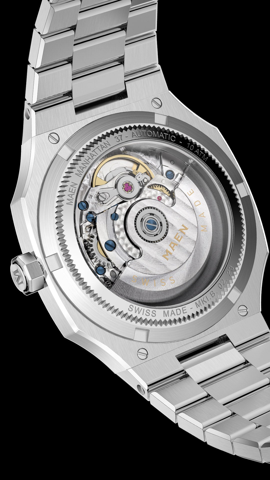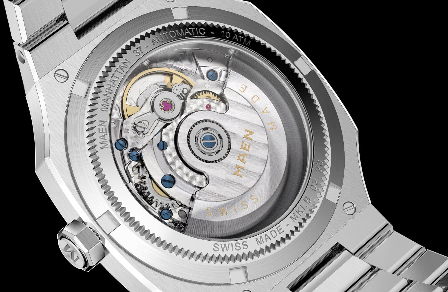 The Manhattan 37 is now also available with Top Grade Sellita SW200-1 movement. The rhodium plated, fully decorated movement with blued screws can be admired through the open caseback which is exclusively available in combination with this movement.