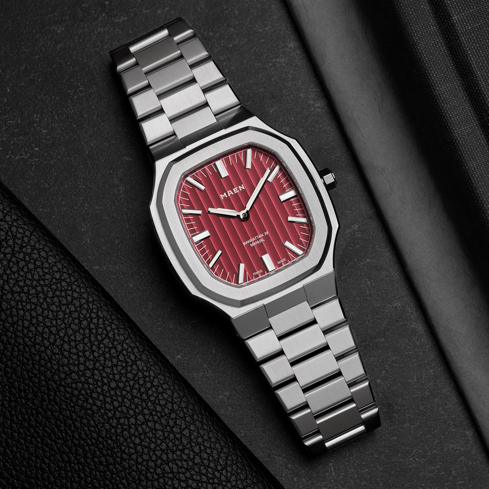 The Manhattan 39 Ultra-Thin features an integrated stainless steel bracelet with a hidden deployment clasp. We did not cut any corners with this bracelet.