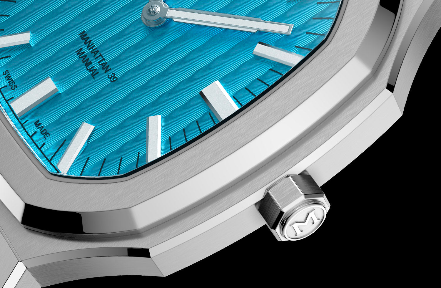 The Manhattan 39 Ultra-Thin has a unique vertically elongated Côtes de Genève dial that creates a spectrum of beautiful shimmers depending on the lighting.
