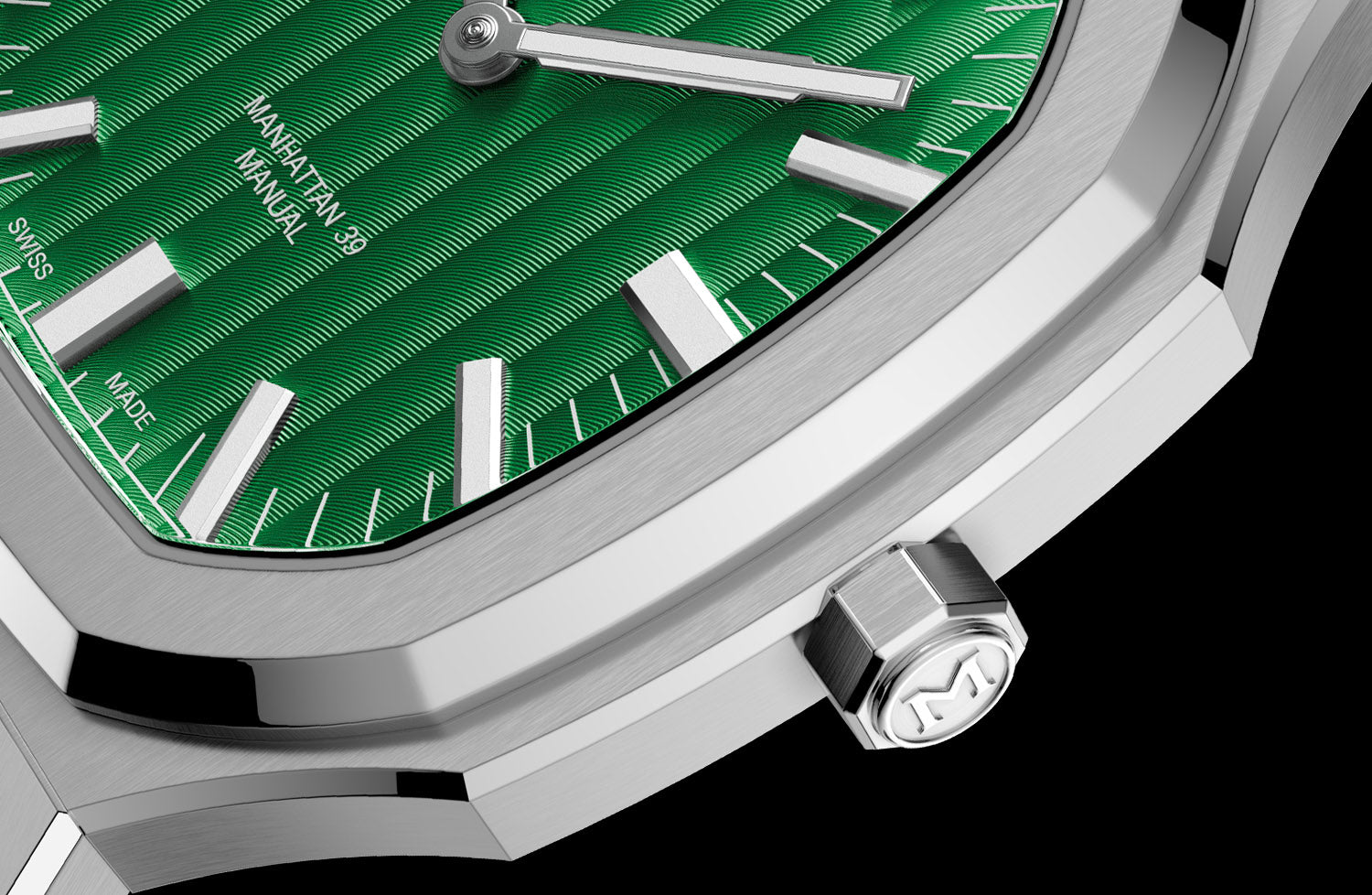 The Manhattan 39 Ultra-Thin has a unique vertically elongated Côtes de Genève dial that creates a spectrum of beautiful shimmers depending on the lighting.